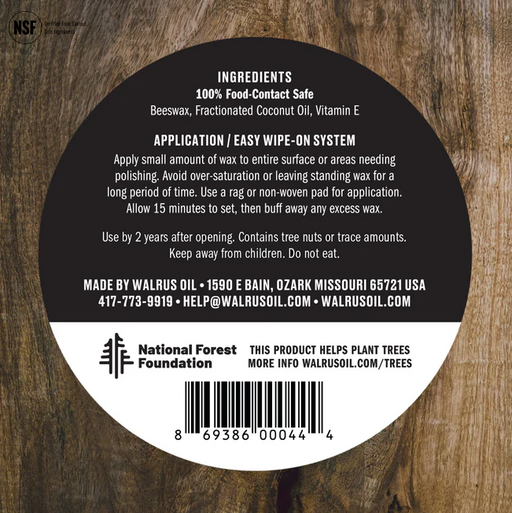 Walrus Wood Wax for Cutting Boards Wood Wax for Cutting Boards is a 100% natural, food-contact safe wood conditioner and polish, that's incredibly ...