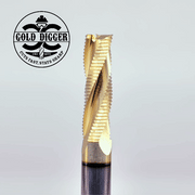 Part of the "Gold Digger Family" of bits, the BIG Boy is the ultimate upcut CNC bit for speed, designed to cut fast, cut deep, and stay sharp. The upcut allows for chip ejection quickly! Its ZrN gold coating increases the bit’s hardness and heat resistance, extending its lifespan and ensuring it powers through tough materials with ease. Perfect for roughing out large projects,