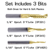 This three-piece O-Flute CNC Bit Set includes the most commonly used sizes for cutting plastics, acrylics, HDPE, and other soft materials. Perfect for makers who want clean, precise results with less melting and edge cleanup.