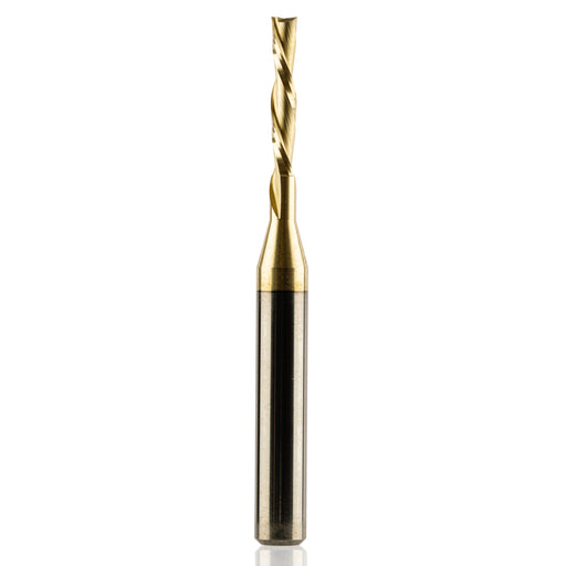This 1/16" O-Flute with a 1/8" shank is great for detail work, small text, and tight pockets. The single flute clears chips fast, so it works well ...